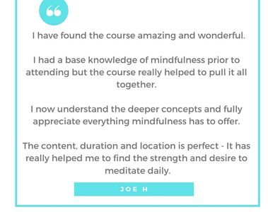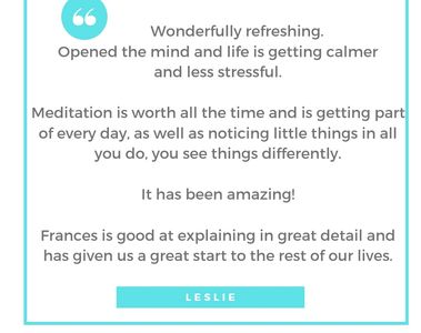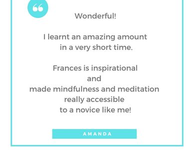 The meditation exercises also helped me to identify some mental baggage that I've been carrying around for years and begin to let it go. Frances is very knowledgeable and passionate about mindfulness and the course covered a lot of ground. She's also down to earth and made me feel completely at ease. I shall definitely use what I have learnt and keep on meditating.