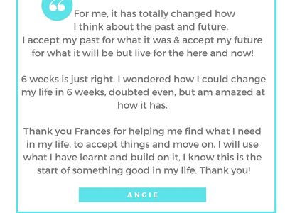 BRILLIANT!!! A real discovery of a new way of being! I feel armed with a range of good tools to deal with life's challenges. Take a leap of faith - do the course, you wont regret it - it's a real revelation - very freeing!! Definitely made me less anxious and tense. Far more aware of myself and really opened my eyes. Thank you so much Frances. Alan
