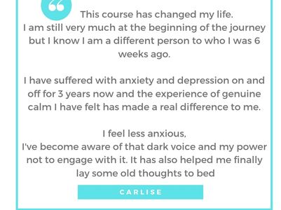 Enlightening! I worried that I would do the course and feel the same at the end that I did at the start, but I don't! I feel much more relaxed, less stressed & calmer about most situations which I didn't think was possible. Thank you x practice, practice, practice! It's worth the work as the results are great. It has made me so much calmer. Kathryn