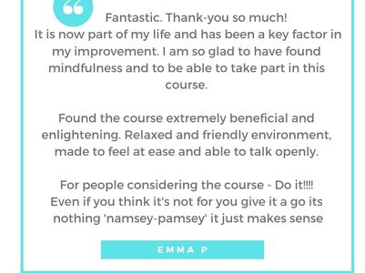 For people considering the course - go for it! You will feel the benefits and have tools for life to help in difficult times. Nicola